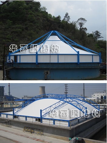 (2) The shape of the membrane system is mostly conical, and because of the requirement of gas collection, the wind will slip through the membrane surface of the curve. Referring to the "Code for Load of Building Structures", the figure coefficient of the membrane system is 0.5-0.8, and the data of wind tunnel tests are smaller, which weakens the influence of wind load on the structure. The Shengxiong leather industry sewage tank in Wenzhou area adopts steel-supported anti-suspension membrane structure. It has just experienced the strongest typhoon of this year, Sea anemone. Its structure is intact and intact, which fully reflects its wind resistance advantages.