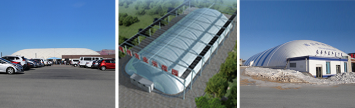A large-span enclosed structure is supported by a monolithic membrane cloth joined together by air pressure, the lower edge of the space is tightly fixed on the ground or flat wall, and is anchored by metal components and concrete beams, continuously inflating into it, It expands the whole membrane like a balloon, forming a fixed air support due to the pressure difference between the inside and outside of the membrane. Equipped with advanced automatic control system, automatic balancing inflatable equipment and generator which can start automatically when power failure, it can keep the gas film in normal use for a long time, and can be in the state of unmanned automatic control for a long time.
