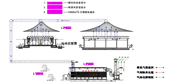 膜成功百富策略白菜网百富策略白菜网开启了池体加盖的新篇章。这种结构形式的最大特点是主体结构为普通碳素钢外置反吊膜结构。现在国内许多新建、提标改建百富策略白菜网都采用此种建筑形式。